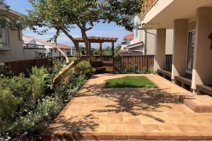 フェンスや駐車スペース、玄関までのスロープはもちろんのこと、お庭の
