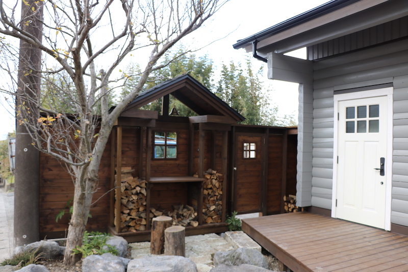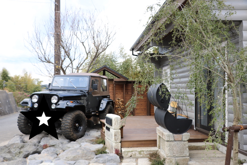 - ジープ不在時は薪小屋が主役になるよう配置